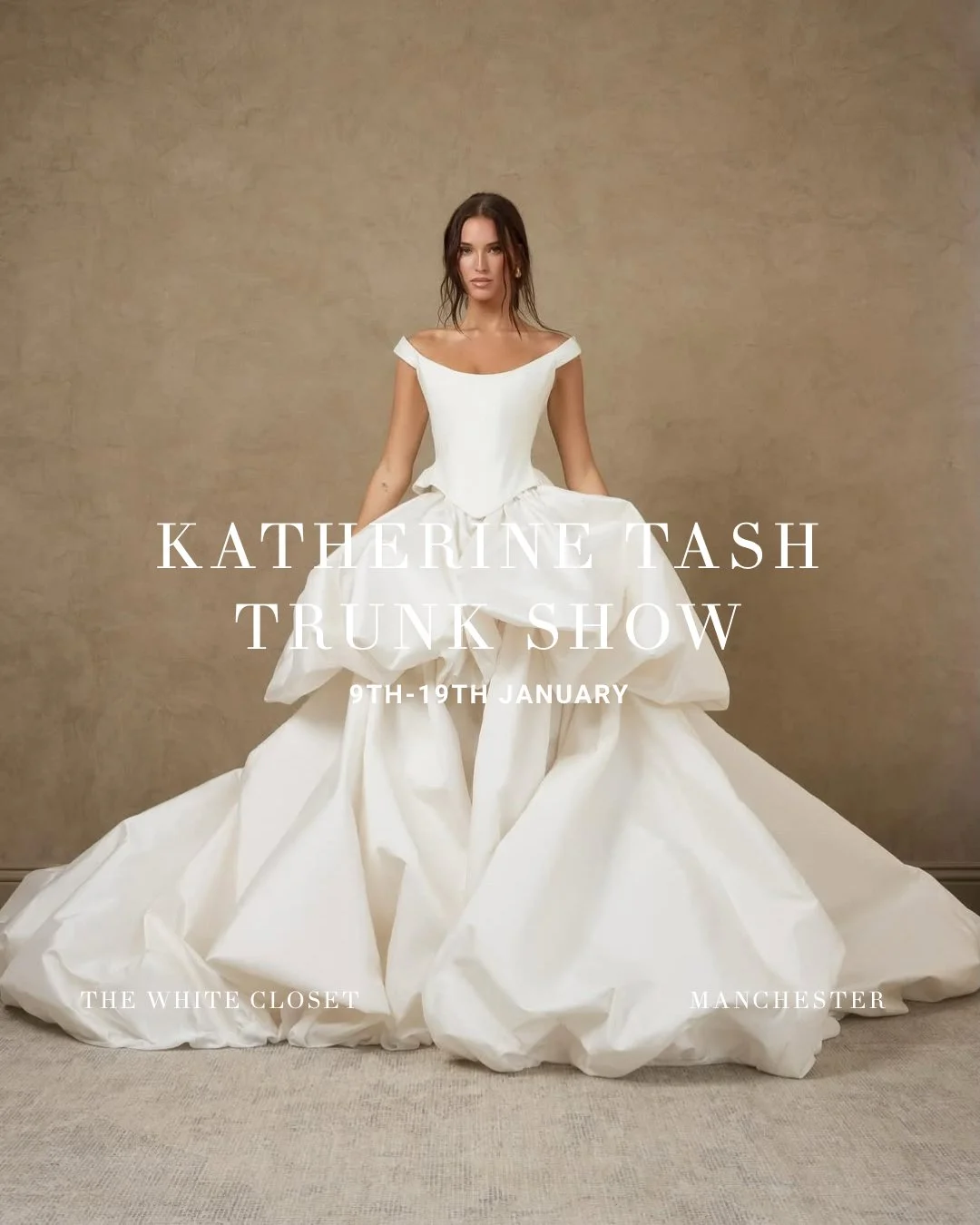 This special bridal trunk show offers brides a rare opportunity to try on a wider selection of Katherine Tash wedding dresses than usual, with expert bridal styling advice in an intimate boutique setting. Whether you’re searching for a sleek satin gown, a romantic corseted bodice, or a contemporary silhouette with classic elegance, this event is ideal for brides seeking refined, modern bridalwear.